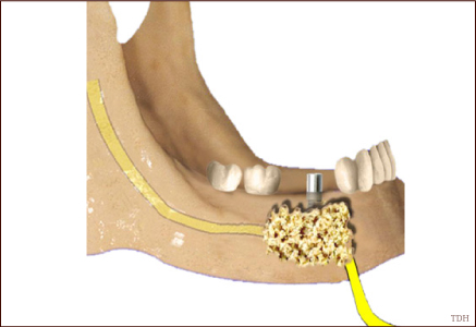 Ýmplantla sinir arasýna , hastanýn kendi kemiðinin yumuþak kýsýmlarý yerleþtirilir ve membranla örtülür .